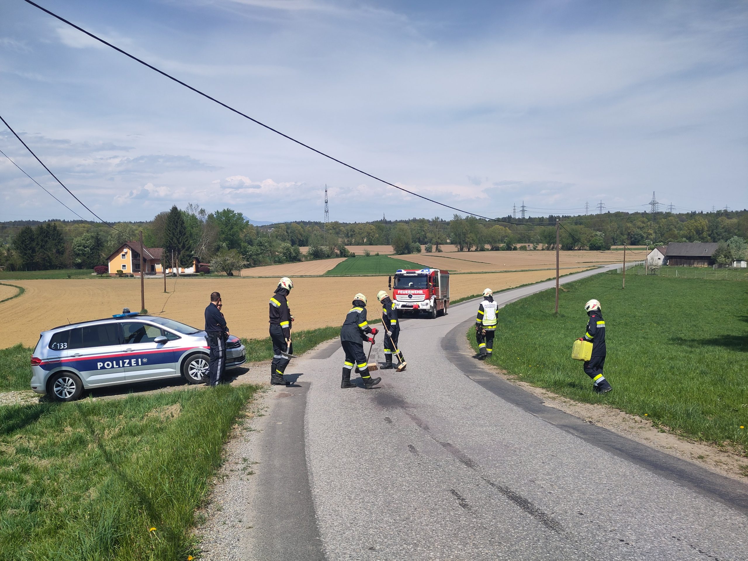Am Sonntag, dem 19. April 2026, wurde die Feuerwehr Hengsberg von der Polizei zu Ölbindearbeiten im Ortsteil Kühberg alarmiert. Zuvor war ein Motorradfahrer aufgrund einer Ölspur beinahe zu Sturz gekommen.